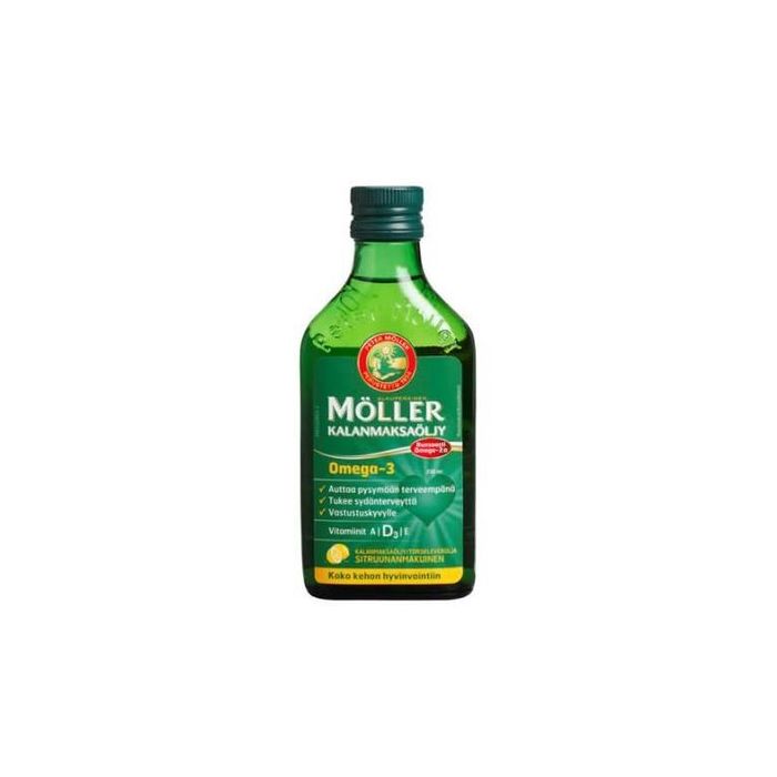 Möller kalanmaksaöljy sisältää terveyden kannalta välttämättömiä omega-3-rasvahappoja (EPA ja DHA) sekä A-, D3- ja E-vitamiineja. DHA edistää aivotoiminnan ja näön pysymistä normaalina. Edullinen vaikutus saavutetaan nauttimalla 250 mg DHA/vrk.